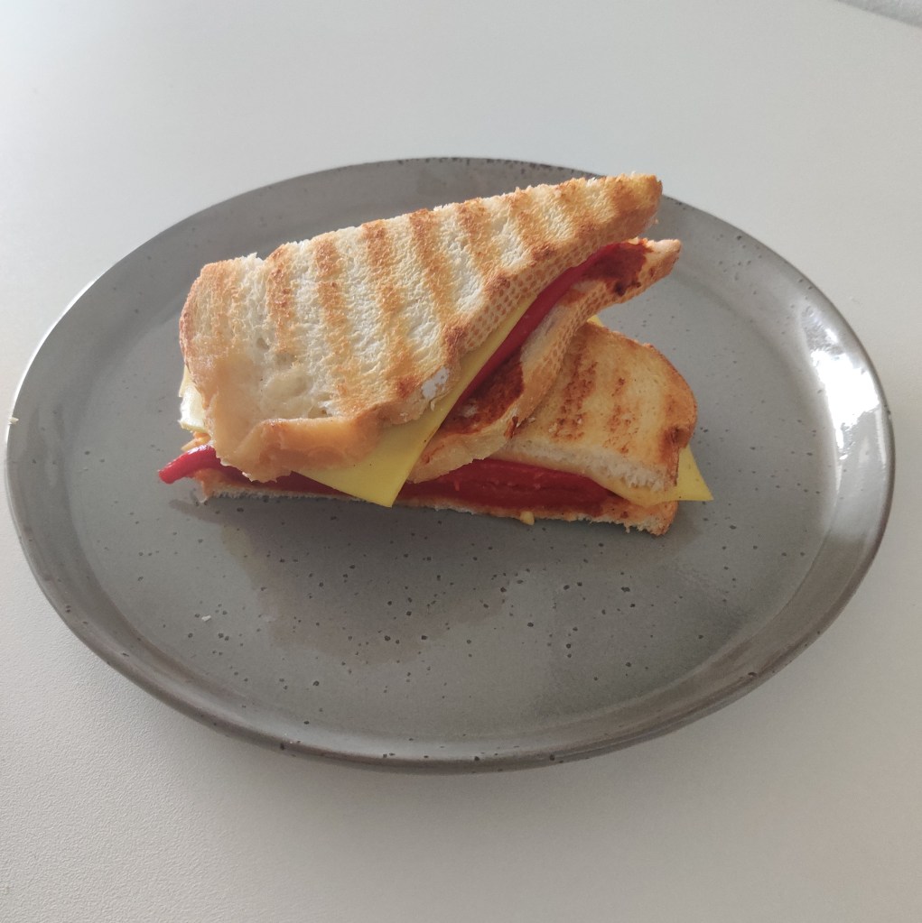 Besmeer een boterham met de harissa, leg hierop twee plakjes Violife en bedek met de tweede boterham. Besmeer eventueel de buitenkant met boter en verwarm in een grill of een koekenpan totdat de buitenkant goudbruin is. Snijd schuin doormidden en geniet.